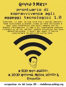 9 Marzo: Prontuario di sopravvivenza agli aggeggi tecnologici 1.0 @ Via del Leone (Firenze)